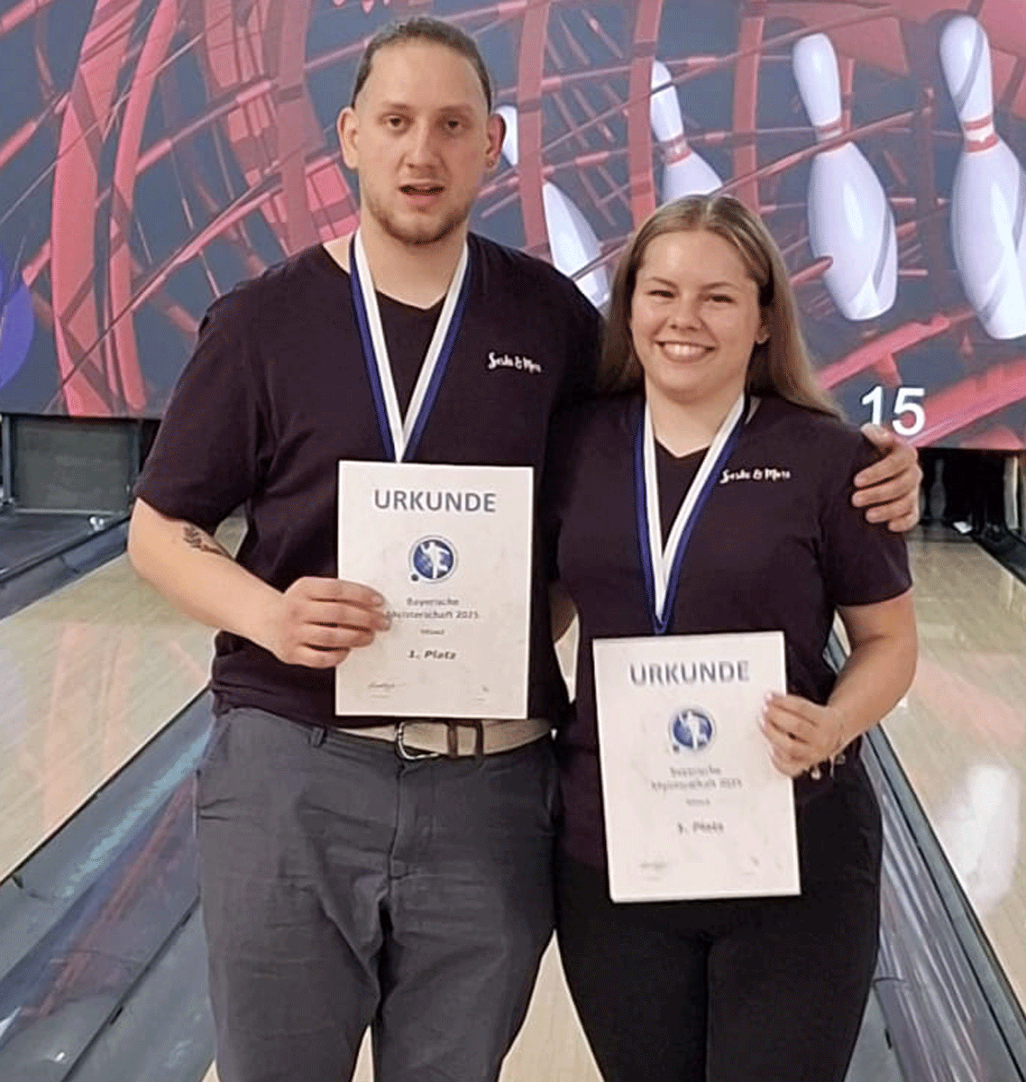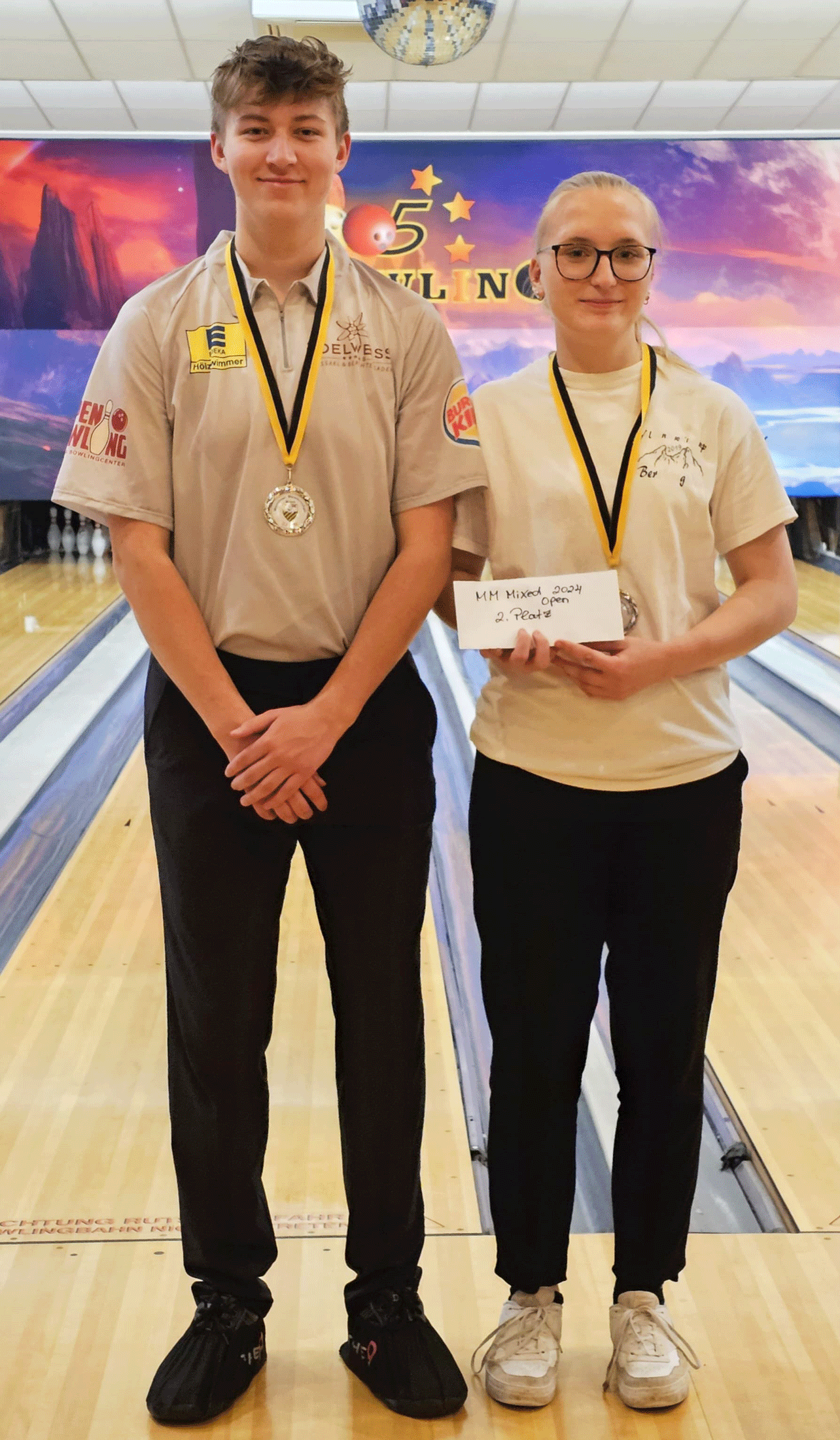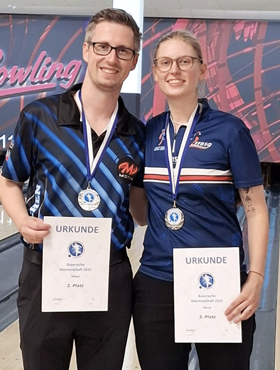 Eine grandiose Aufholjagd gelang auch Franziska Czech (Regensburg) und Michael Eisenmann (BK München). Von Platz 18 im Vorlauf mit "nur" 2234 Pins konnten sich die beiden mit 2558 Pins im Zwischenlauf und noch einmal 2539 Pins im Finale auf den zweiten Platz nach vorne schieben. Sie sicherten sich damit Silber und verdrängten damit Gille/Brodowsky auf den Bronze-Rang.
