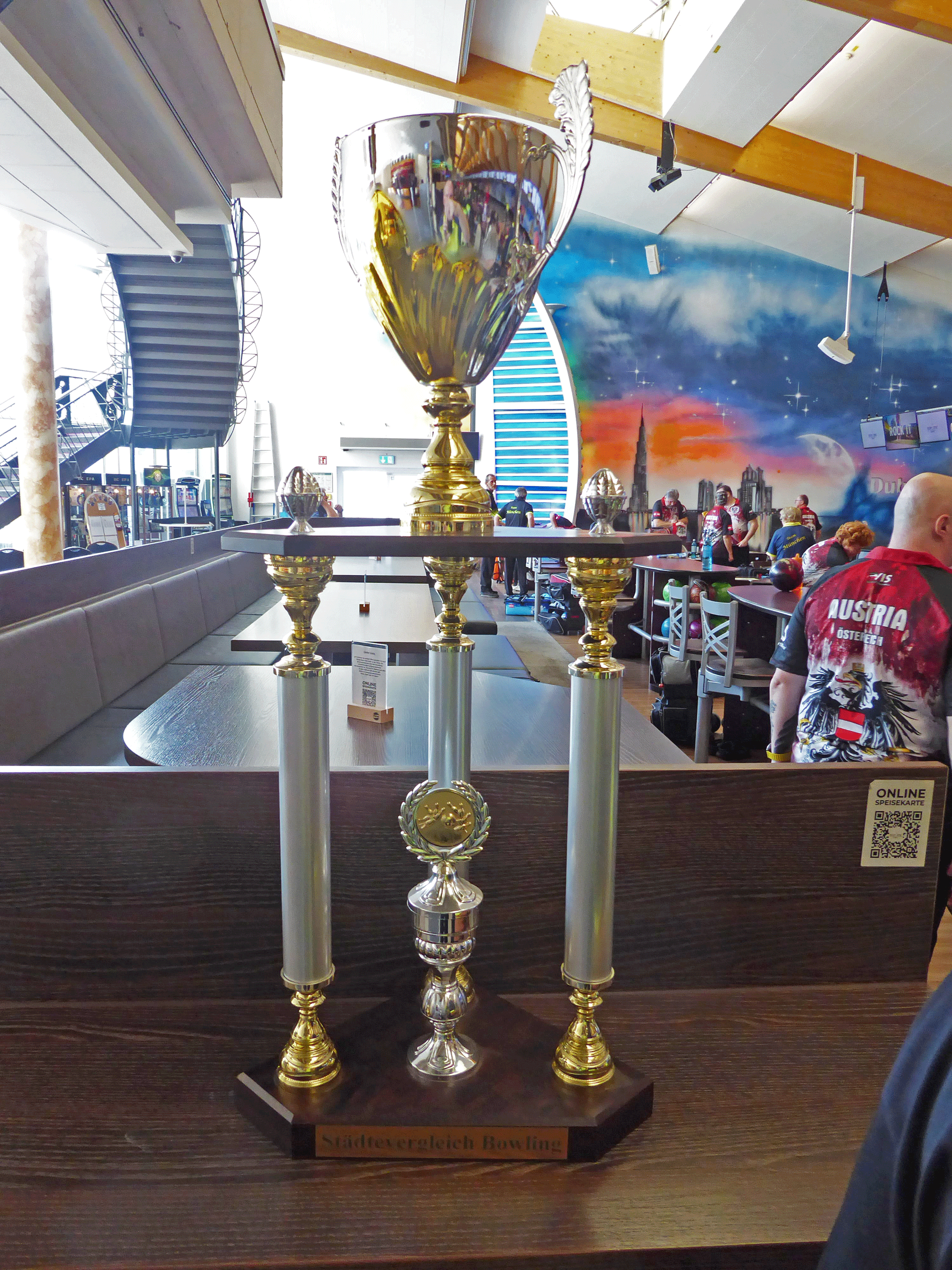 Es wurden am Samstag beim Doppel und Trio Wettbewerb schon hervorragende Ergebnisse gespielt. Die Auswahl von Wien ist mit einem Vorsprung von ca. 90 Pins in den Biergarten gefahren.