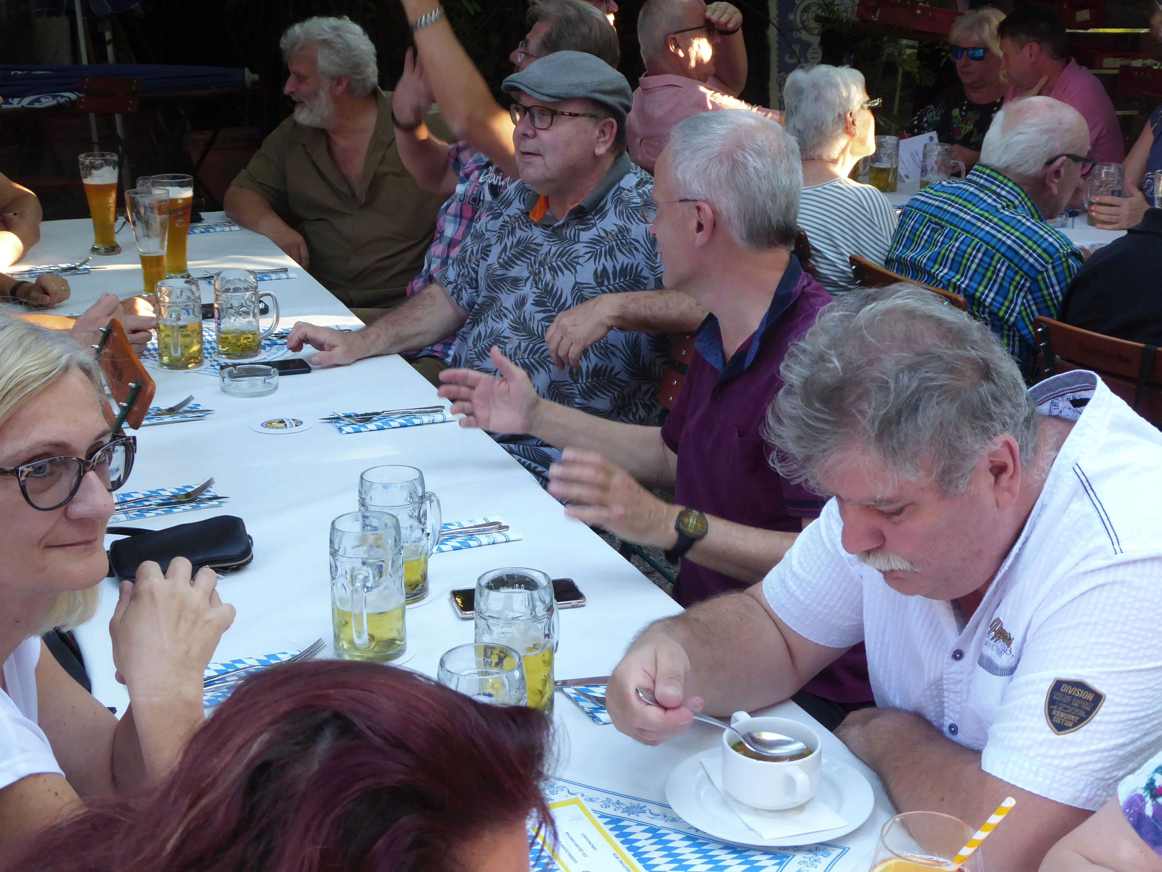 Es waren diesmal 100 Seniorinnen und Senioren an diesem Wettkampf beteiligt. Auch am geselligen Abend beim Alten Wirt Obermenzing im Biergarten bei schönem Wetter waren 90 Teilnehmer dabei. Bis auf ein paar Kleinigkeiten ist dort auch alles gut abgelaufen (manche mussten auf ihr Essen warten) und unsere Wiener Gäste waren sehr zufrieden mit den Worten: das war bis jetzt die schönste Lokalität die wir ihnen angeboten haben. Das Essen war gut und der Durst war auch sehr groß bei einigen.